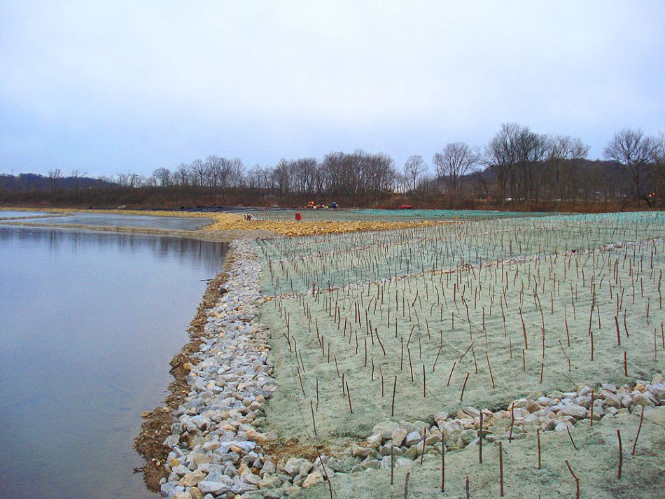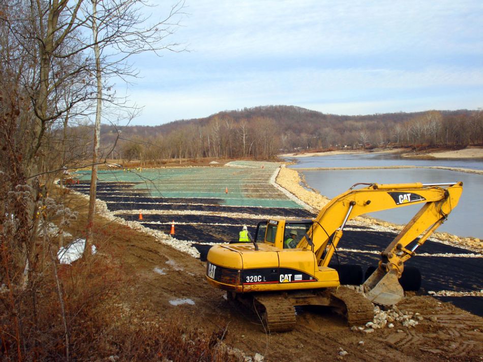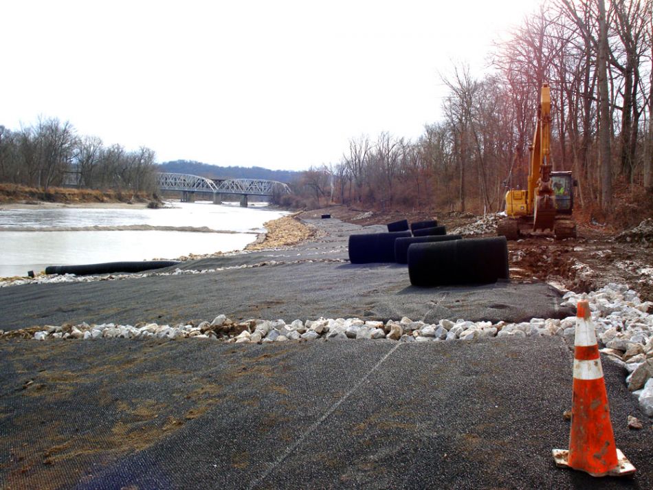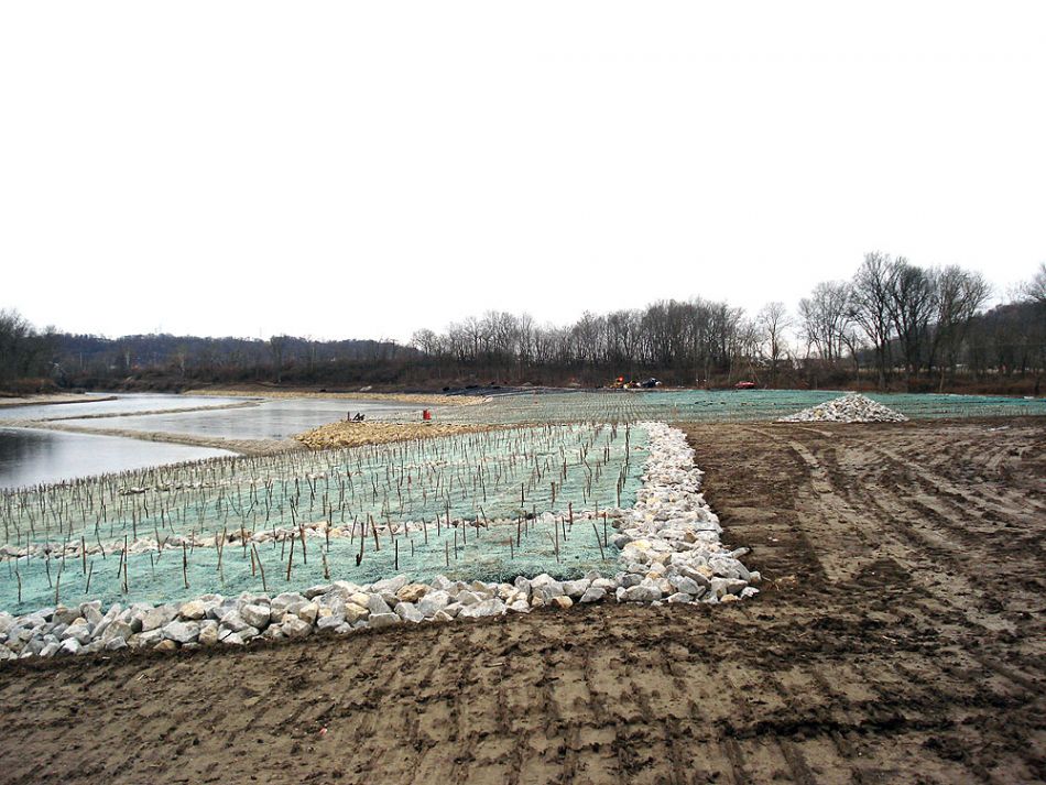 GreenArmor and Rock Anchoring System installed with willows along the shore of the Little Miami River near Cincinnati, Ohio.
