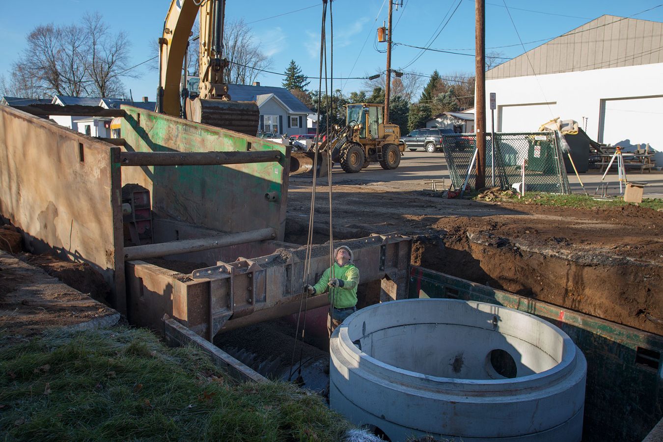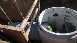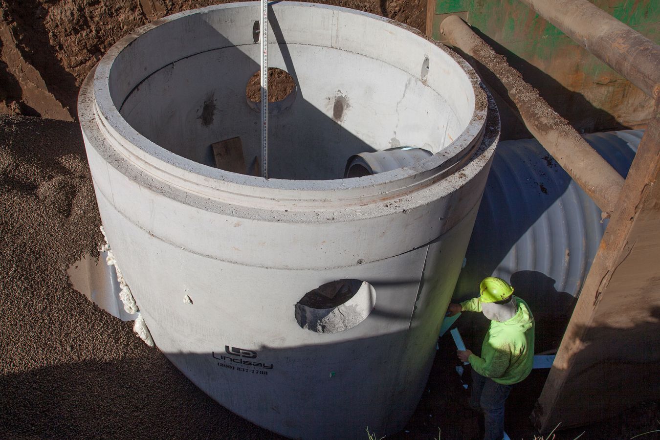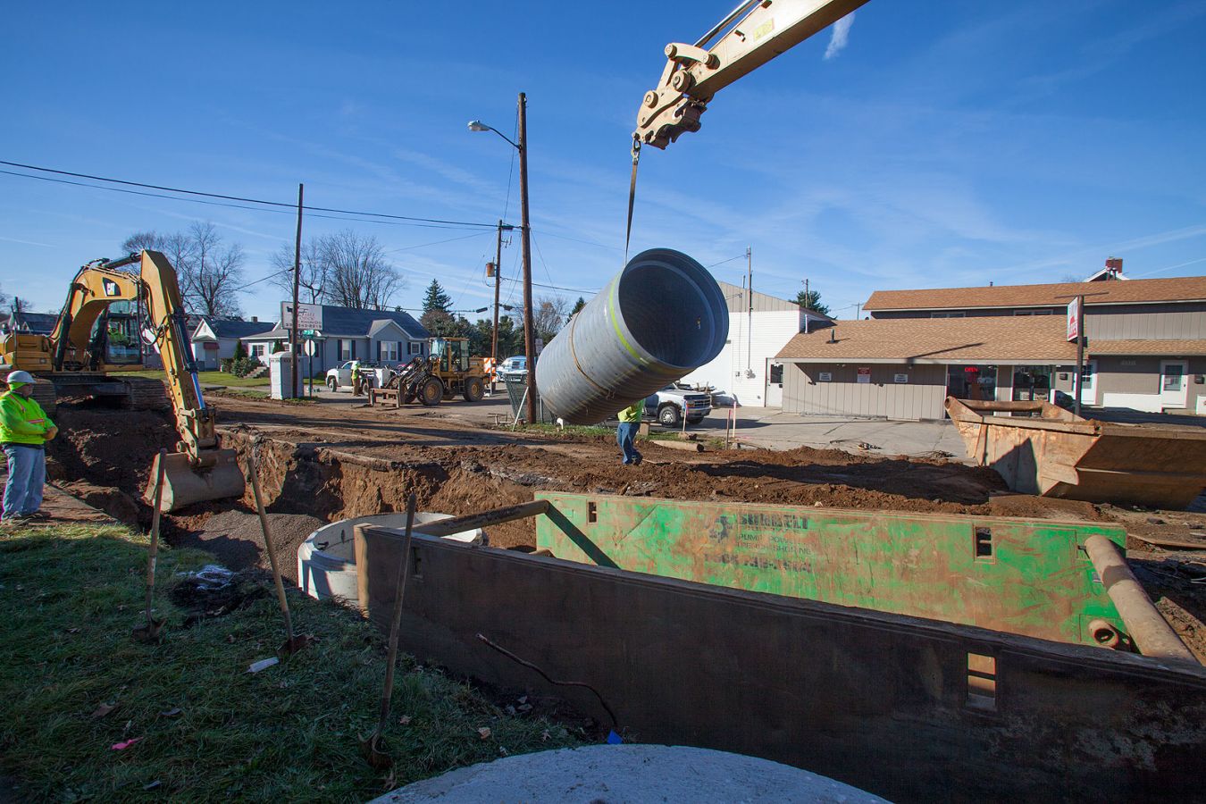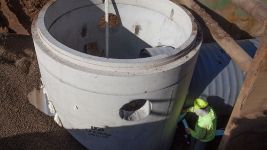 The project involved the installation of 2600 lineal feet of 60" triple wall storm sewer with associated utility replacements, manhole structures and a 72" boring under the existing railroad. Installation depths ranged from 11 to 14 feet in extremely challenging soil conditions.