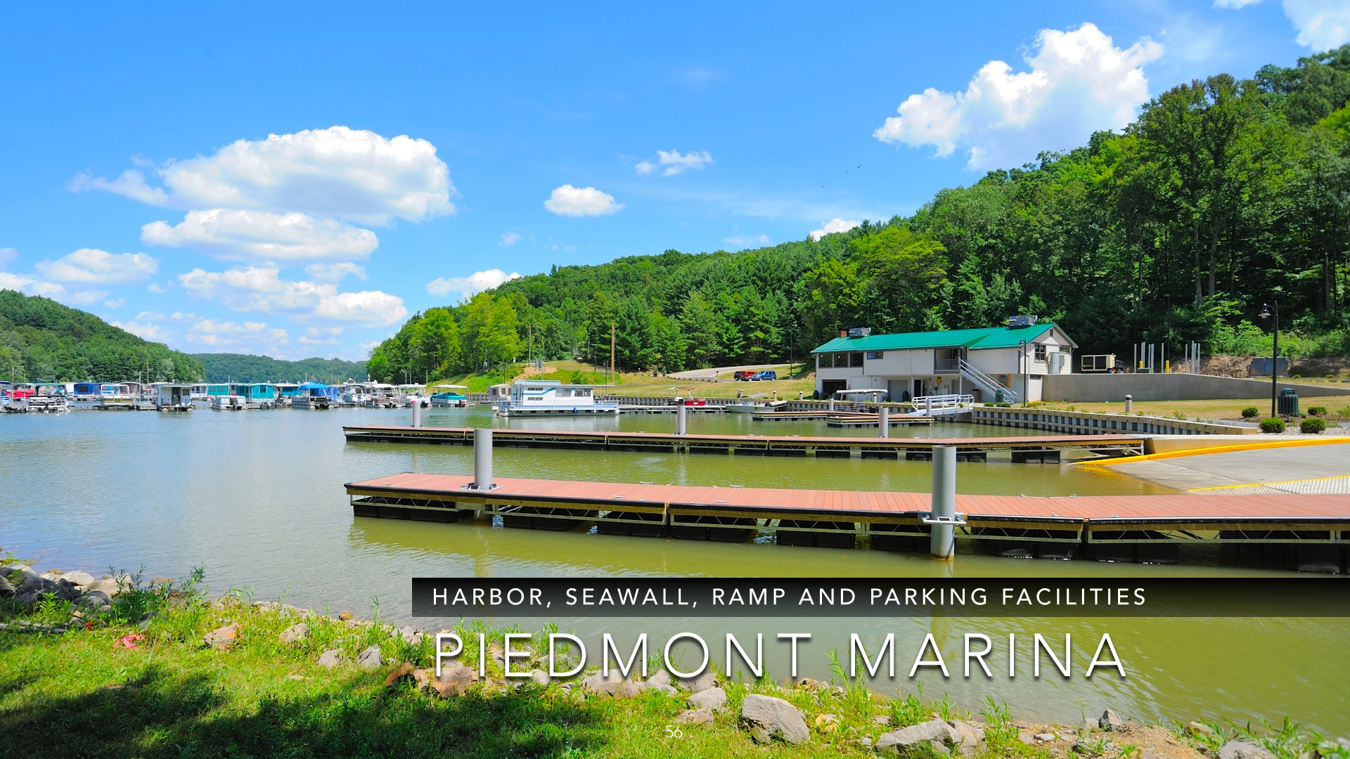 Reconstruciton of the MWCD Piedmont Lake Marina which includes installation of new fiberglass retaining wall, boat launch ramp, docking systems, rigid and flexible pavements and dredging of the harbor area for improved access.